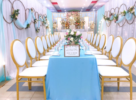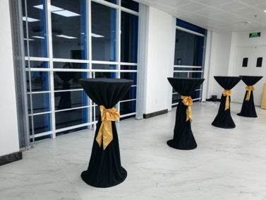 Những chiếc bàn ghế sự kiện này đặc biệt thích hợp cho các sự kiện hội nghị hoặc ra mắt sản phẩm mới. Bàn ghế tiệc có khăn trải bàn sang trọng, ghế và nơ, thường được liệt kê trên đỉnh gần sân khấu và dành cho khách VIP.